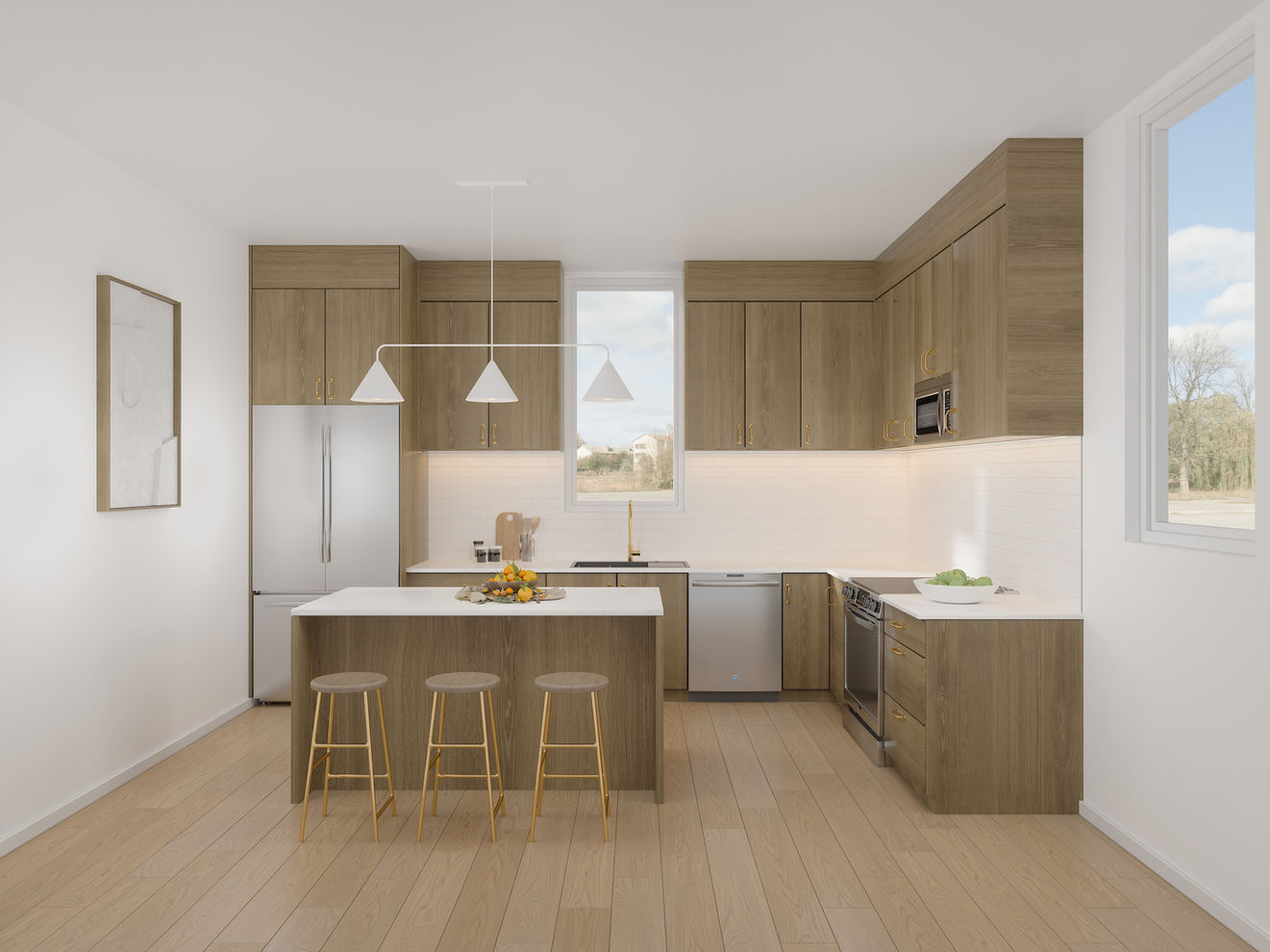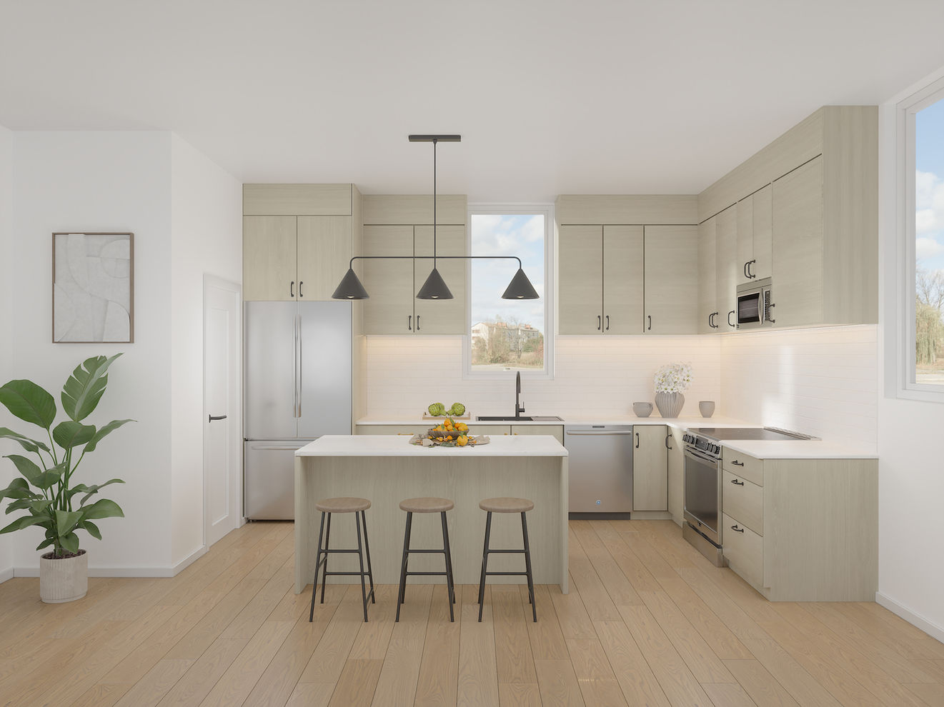 Inside, you’ll find durable LVP flooring, custom Abodian cabinetry, and one of two modern design schemes featuring black or gold accents. All kitchens are equipped with LG appliances, combining style and functionality.